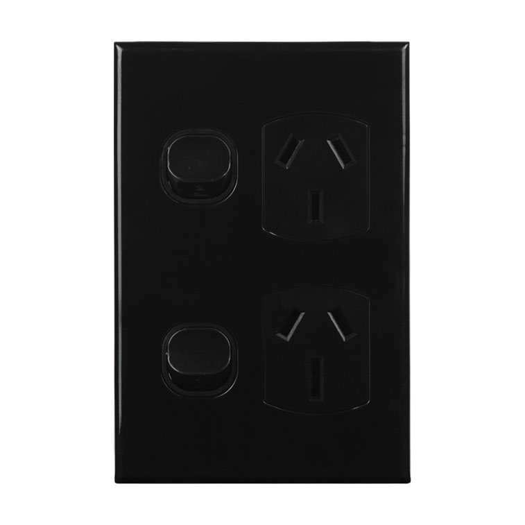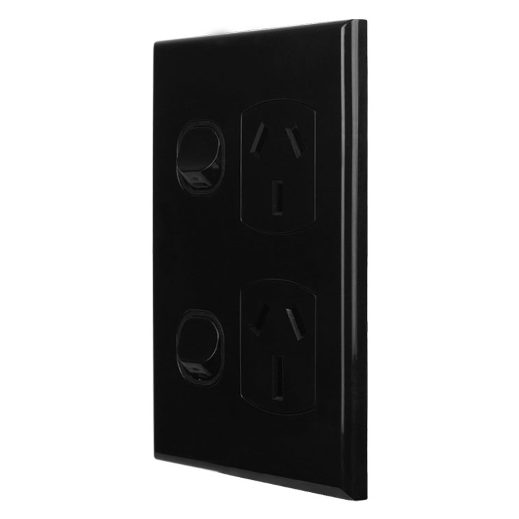 Vertical Double GPO 15A 240V AC BLACK GEO Series