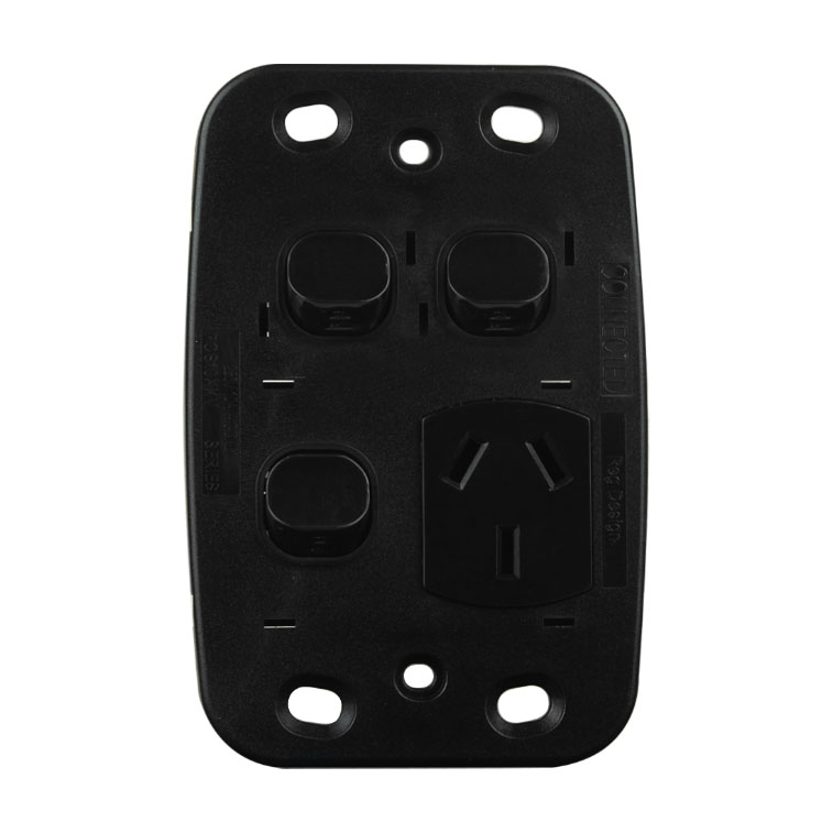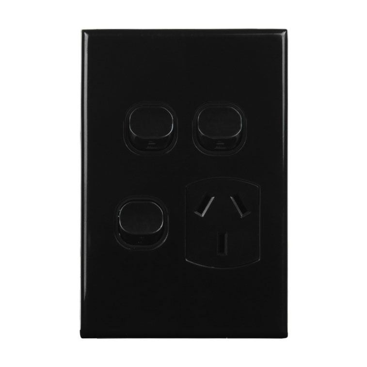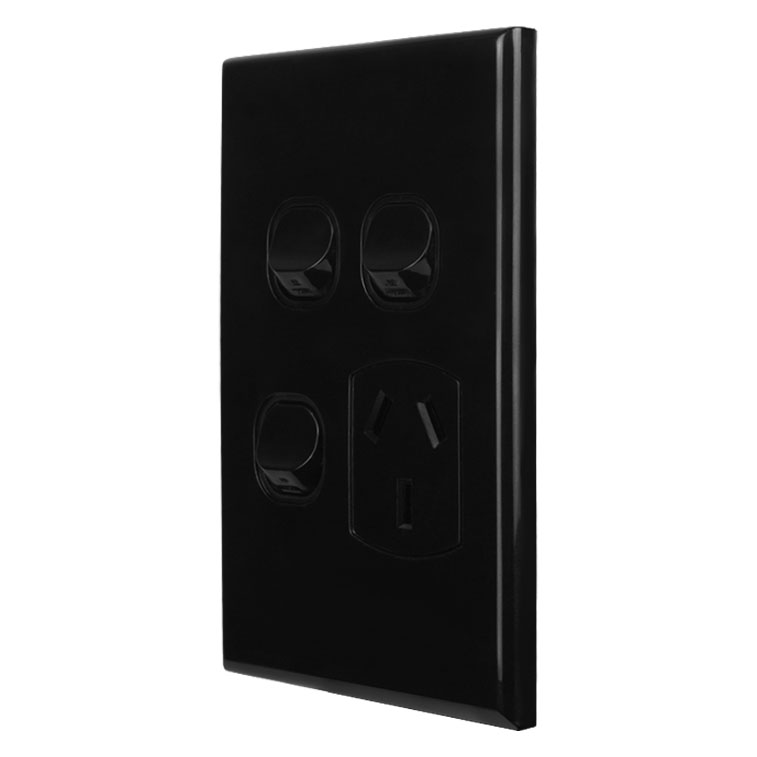 Single GPO + 2 Extra Switches Vertical Black 10A 240V AC GEO Series